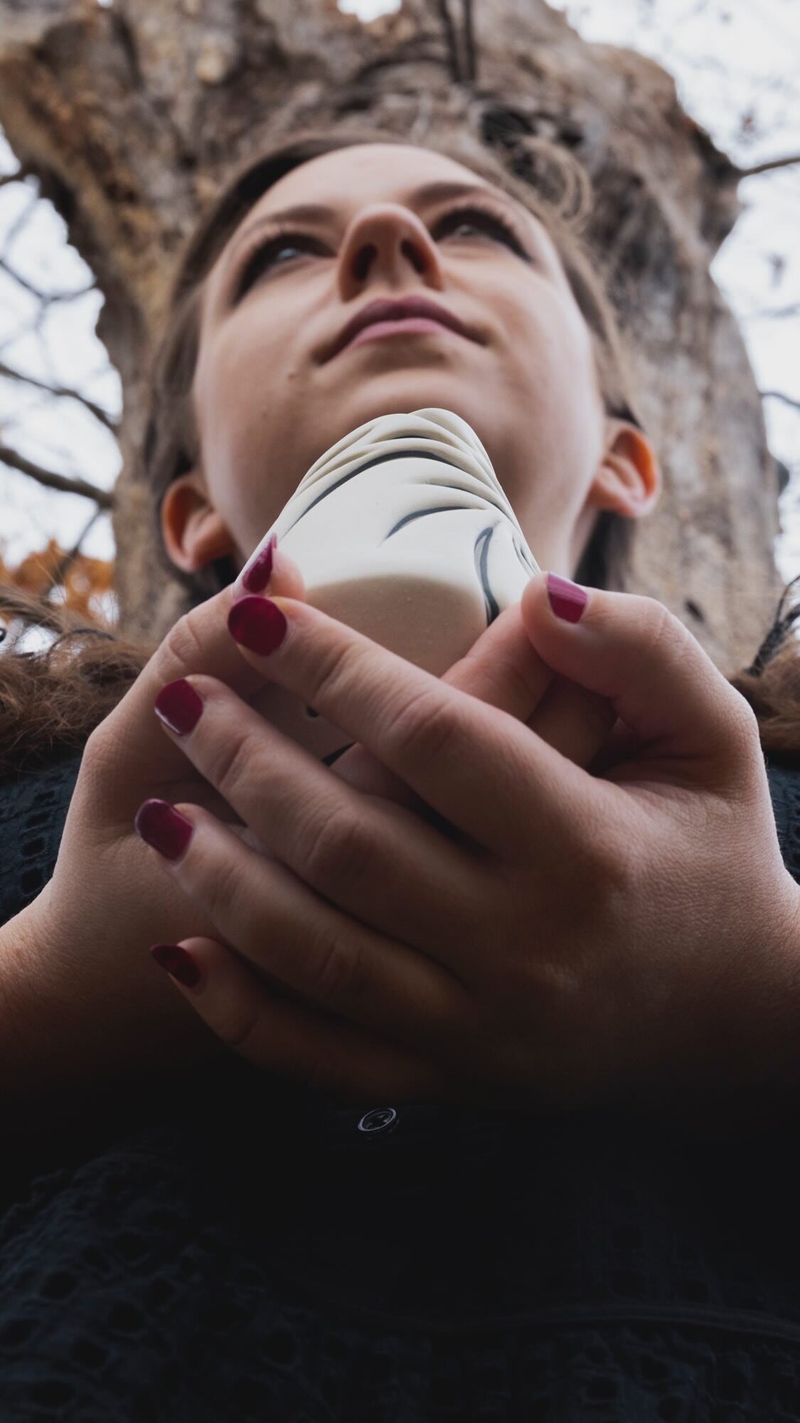 Carved hanging planters designed to hold small succulent plants. The unique carving on the outside reveal the different layers of stained clay.